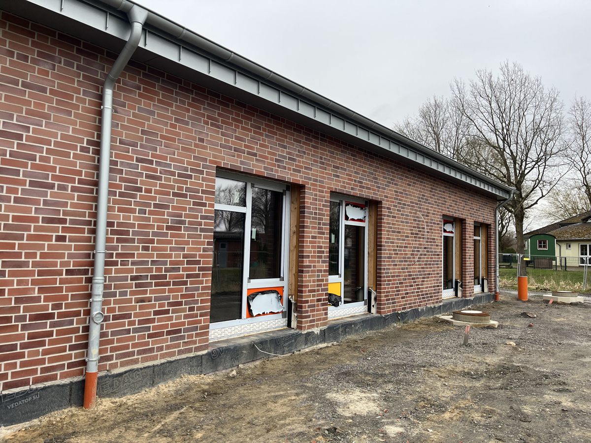 Die neue Kita in Hamm steht kurz vor der Fertigstellung. Auch die Arbeiten an den Außenanlagen befinden sich in den letzten Zügen.